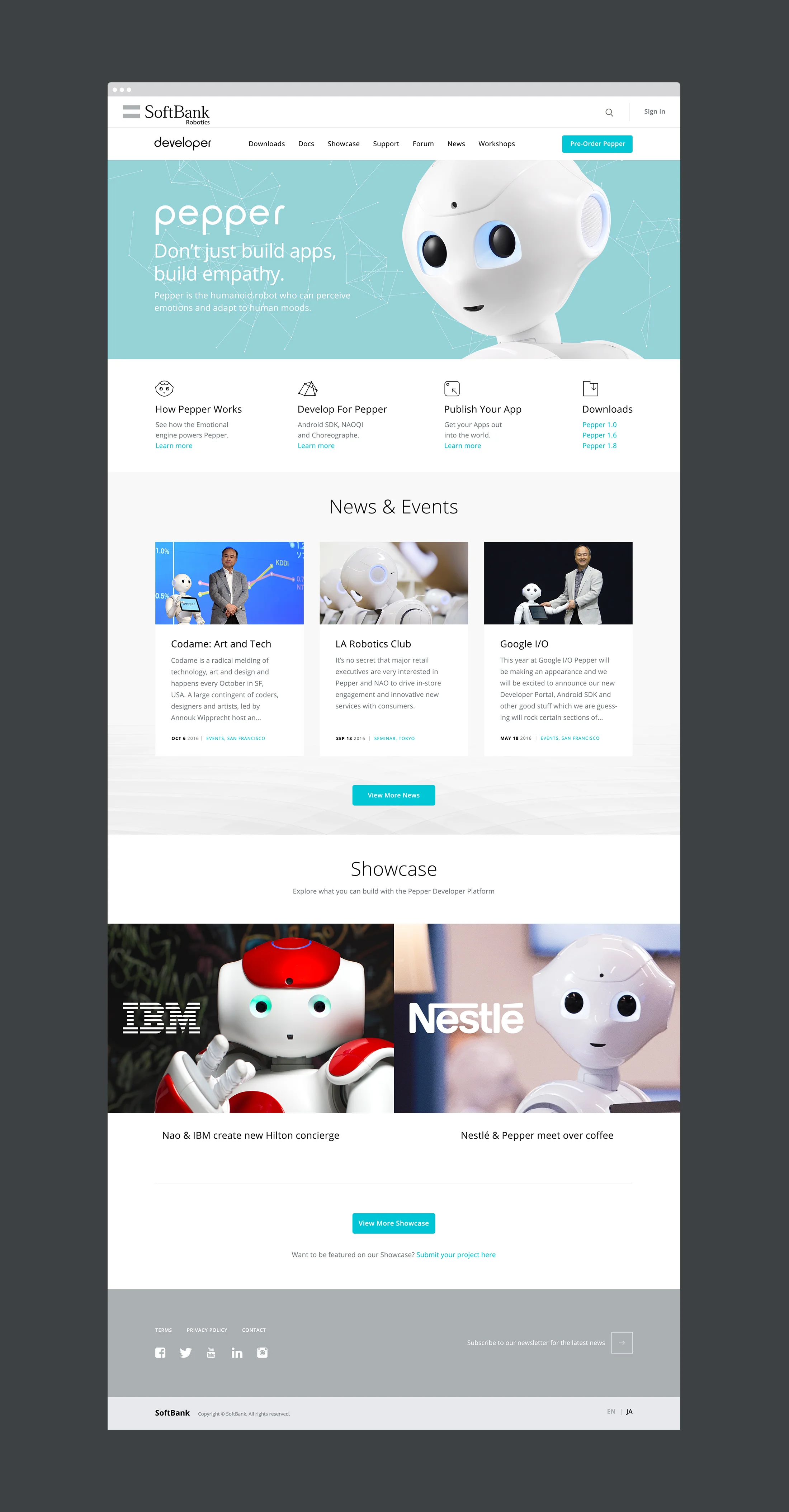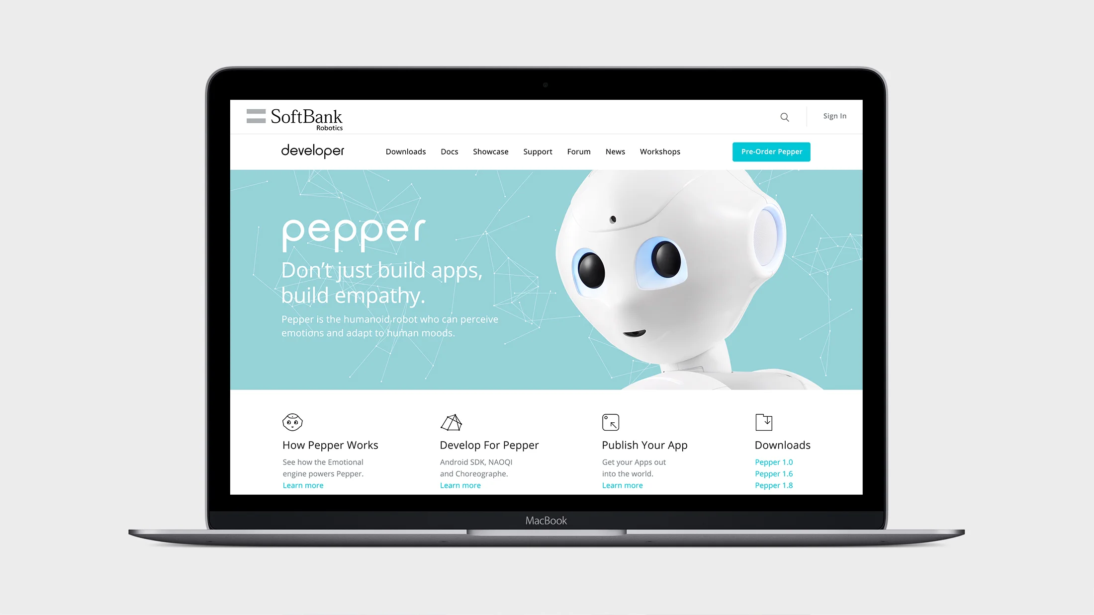 Created to be the focus of the launch, we designed, built and deployed a global Developer Portal for SoftBank Robotics. The Portal was conceived to inspire, connect and engage developers across the world.